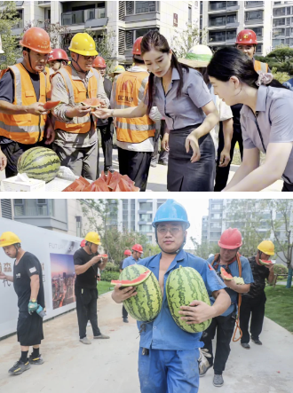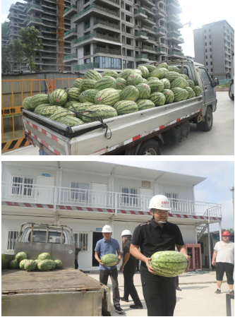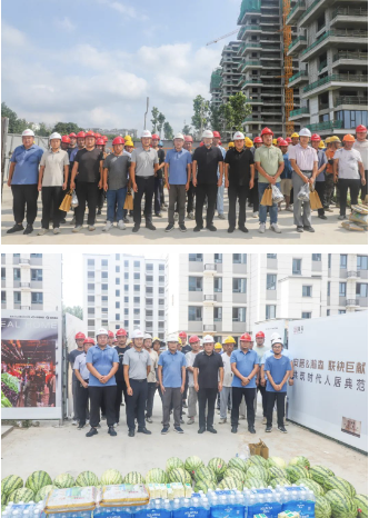 为致敬这群高温下的坚守者,7月8日,安居集团精心策划并组织了一场 “夏日送清凉” 活动,县安质站站长马超、集团总经理何乃强、副总经理兼雅居建筑公司总经理闫海洋带领团队,将关怀与清凉送至每一位奋战在施工一线的劳动者身边。