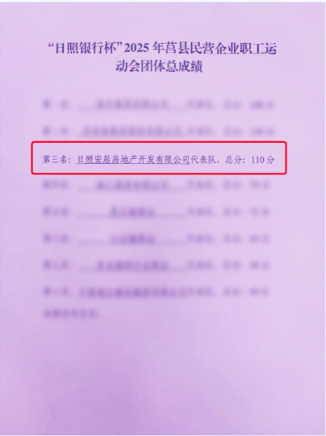 7月2日,骄阳似火,激情澎湃。莒县民营企业职工运动会于一片喝彩声中圆满落幕。安居集团的运动健儿们以昂扬之姿挥洒赛场,最终勇夺团体二等奖和优秀组织奖,书写了属于安居人的荣耀篇章!他们更在“步调一致”、“百舸争流”项目中双双夺魁,并在“奋进拼搏”、男子铅球及男女混合接力项目中摘得季军,战绩斐然!