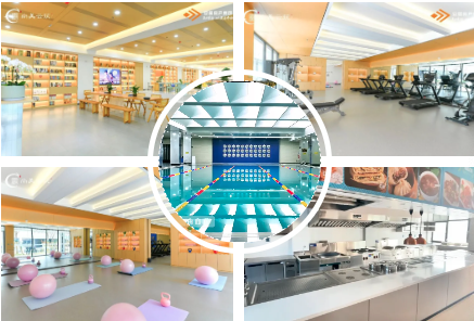 如果说智慧科技是尚美云筑的硬核内核,那么人文温度便是项目最动人的底色。项目深耕 “全龄友好” 与 “社区文化” 建设,从居者的实际生活需求出发,打造有温度、有情怀、有归属感的社区生活。社区内打造的下沉式圈层会所,是集休闲、社交、健身、学习于一体的多功能空间,恒温泳池让居者四季都能享受游泳的乐趣,专业健身房满足全民健身的需求,静谧的瑜伽室为居者提供放松身心的场所,藏满书香的尚美书房营造出浓厚的文化氛围,温馨的业主食堂则解决了老人、上班族的就餐难题,全方位满足了从孩童到老人不同年龄段家庭成员的高品质休闲社交需求。在园林景观打造上,项目深挖莒县本土文化底蕴,取意 “莒州八景”,将沭水拖蓝的唯美意境融入社区中央花园的设计中,一步一景,步移景异,让自然美学与家园情怀完美交融。行走在社区园林中,目之所及皆是绿意,耳之所闻皆是鸟鸣,嘉宾们纷纷感叹,这样的社区环境,既兼具了自然之美与文化之韵,又让居者在繁华都市中拥有了一方诗意栖居的天地。