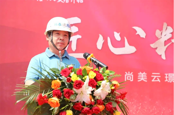 随后,尚美云璟总包单位-日照市恒春建筑工程有限公司董事长范伟清上台致辞。范总表示,工程团队在施工过程中以科学严谨、一丝不苟的态度,精心组织、精心施工,保证了工程的质量与安全,使项目顺利完成节点。今后将继续秉持“以客户为中心”的理念,继续发扬匠心精神,做好后期工作,按期交付一个让业主满意,让用户放心的优质好家。