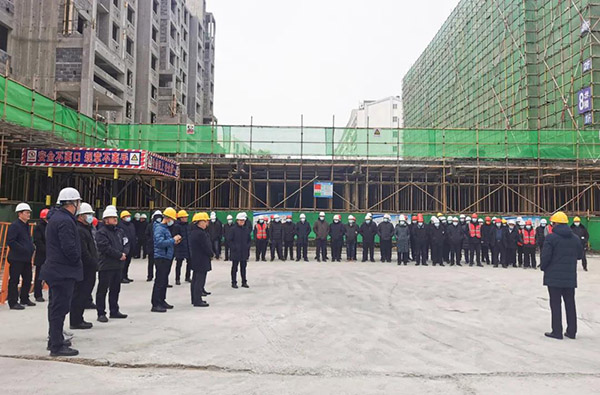 2月17日,莒县政府副县长董瑞鹏,县住建局、生态环境分局、综合行政执法局主要负责人,县城投、土发、国控、城发、公交集团主要负责人及其他相关领导莅临雅筑项目施工现场进行视察指导工作,并就我县建设工程扬尘管理工作召开现场会议。集团董事长柴松军、副总经理兼雅居建筑公司总经理闫海洋现场陪同参加并作工作汇报。