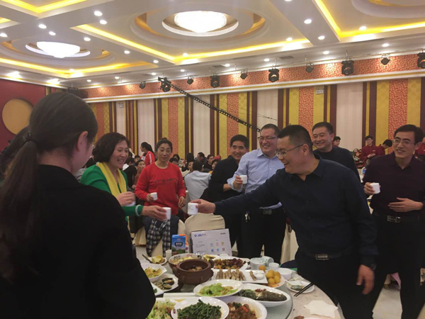 夜色渐浓,随着文艺表演环节的结束,安居集团在酒店准备了晚宴,大家欢聚一堂,把酒言欢。柴总亲自与现场的每位家人碰杯,并送上新春的祝福。觥筹交措间,现场热情更加高涨。晚宴上还设置了抽奖环节,丰厚的奖品,热情的互动,引来阵阵欢呼声,现场形成一片欢乐的海洋。