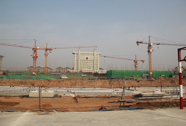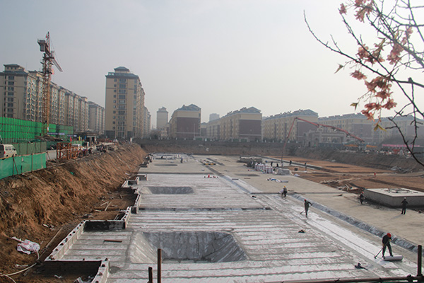 二期北区施工至标准一层,中区垫层浇筑完成,正在进行防水施工。
