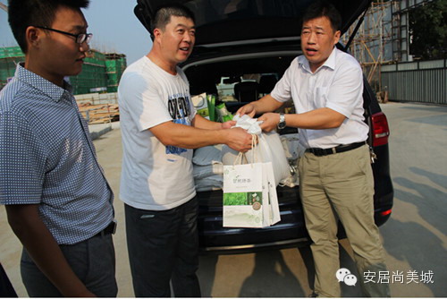 【一袋袋绿豆与精致的绿茶都渗透着安居房产对施工人员的体恤周到】