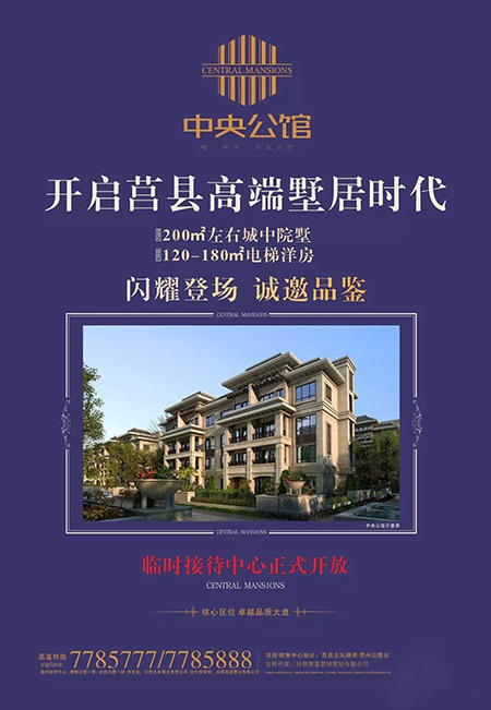 中央公馆地处莒县北坛路以南,莒州公园以北,位居莒城核心地段,环境优美,配套醇熟。通过科学的论证与反复的实践,中央公馆推出120——200m2的三居四居、叠拼别墅等精品户型,空间布局合理,功能分区明确,有院落、带花园、送露台,入住中央公馆,尽享都市尊贵便捷的高品质生活。
